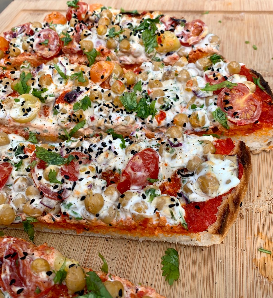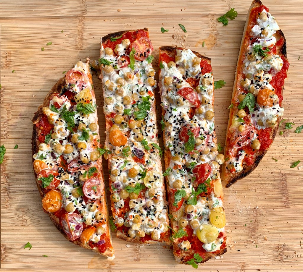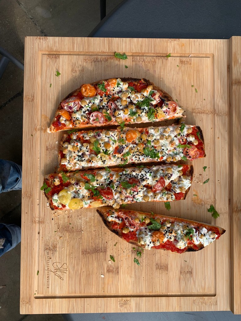 Noch dazu sieht das Fladenbrot einfach toll aus. Diese knalligen Farben der Kirschtomaten und dann das frische Grün des Korianders lassen einem das Wasser im Munde zusammenlaufen und machen Lust auf Mehr.
