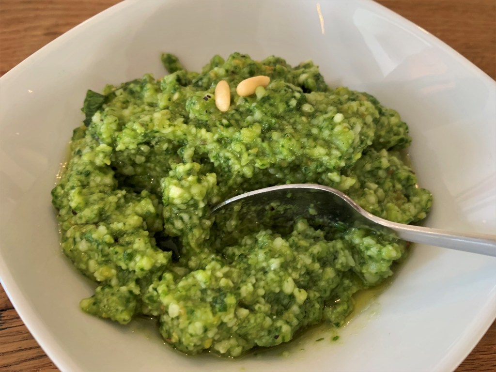 - Wer mag kann zum Ende noch etwas Aceto Balsamico mit zum Pesto geben.