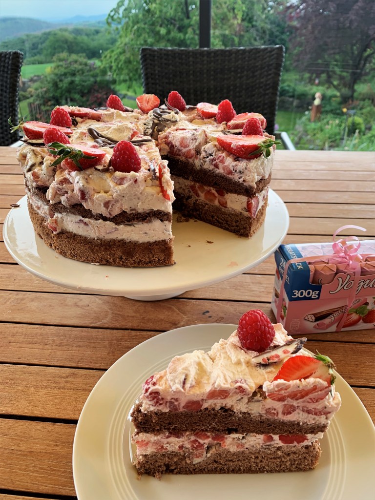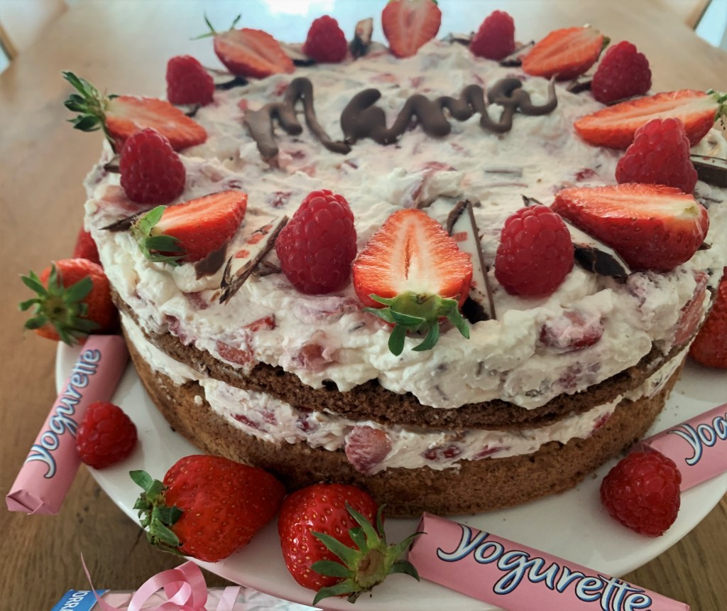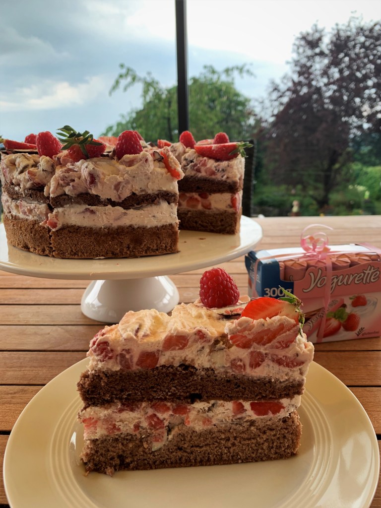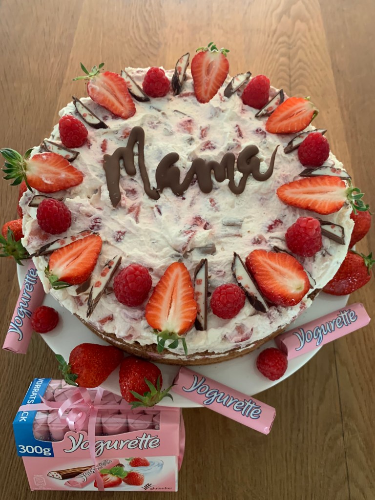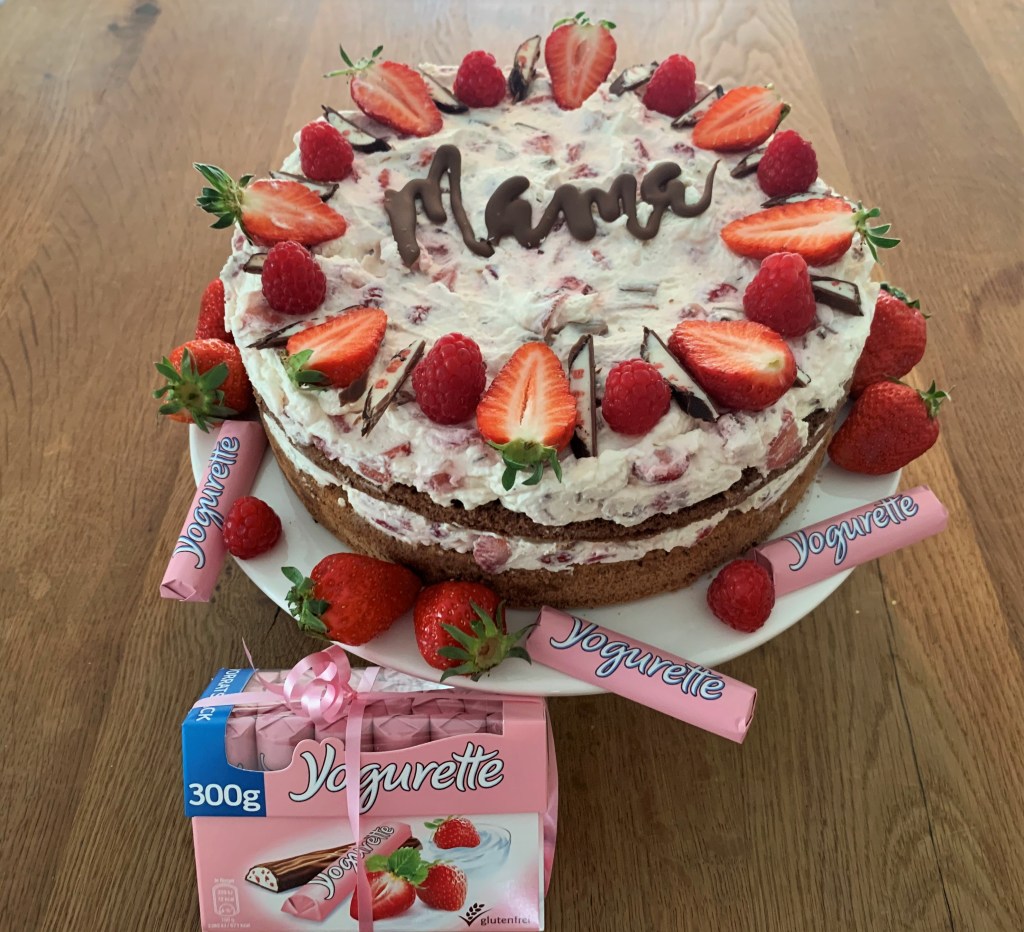 Dieses Jahr gab es keine Blumen an Muttertag. Da meine Mutter sehr gerne Yogurette isst und Himbeeren und Erdbeeren liebt, habe ich mich für diese Torte entschieden. Sie war wirklich wunderbar erfrischend und lecker und macht auch optisch einiges her.