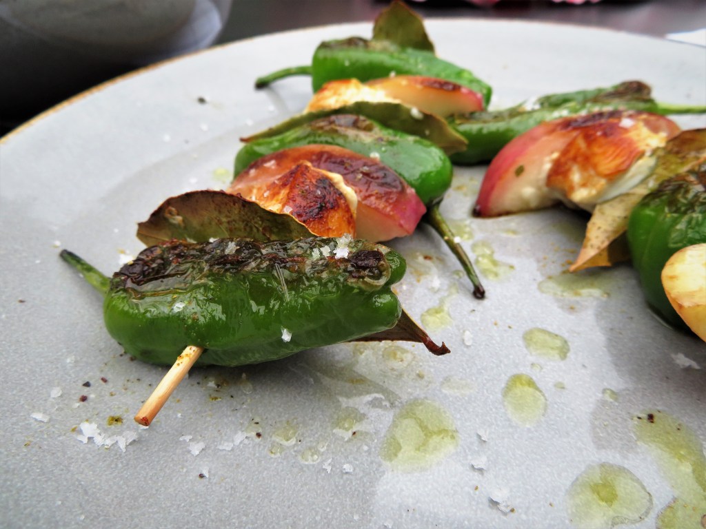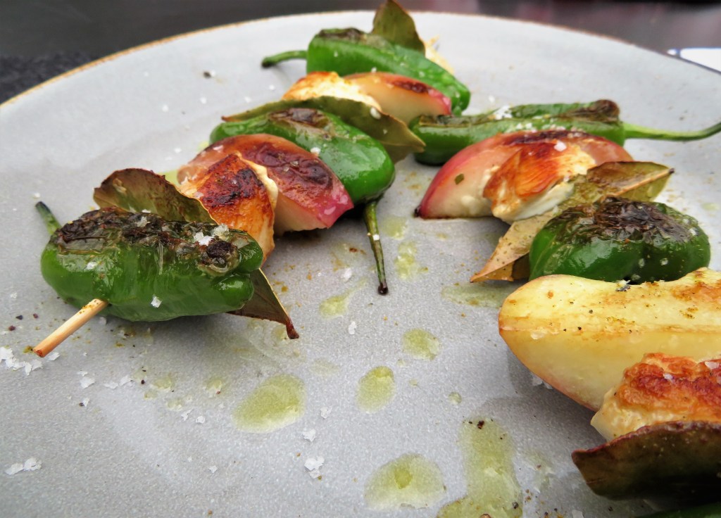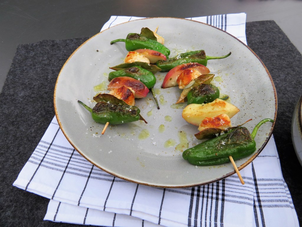 - Die Spieße (besonders die Pimientos) mit grobem Meersalz würzen.