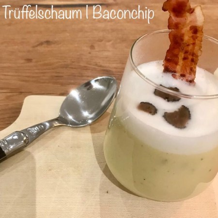 Pastinakensuppe mit Trüffelschaum und Baconchip